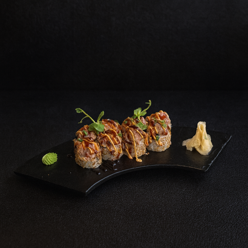 Rice, nori, mango, avocado, Philadelphia cheese, Sweet Chili sauce, sesame, unagi sauce