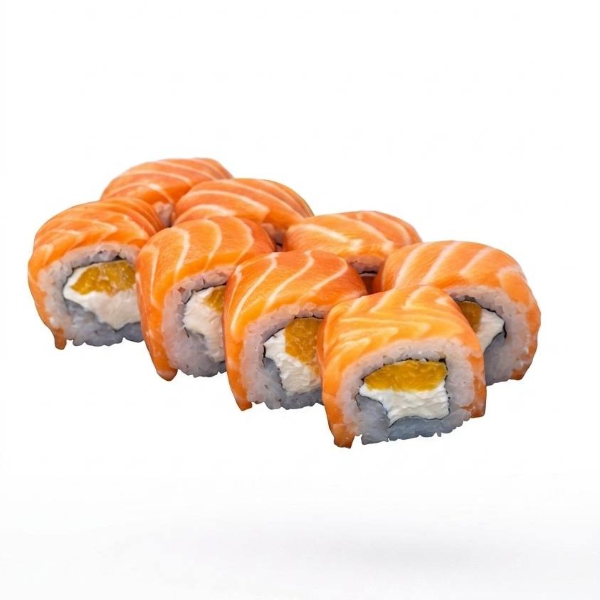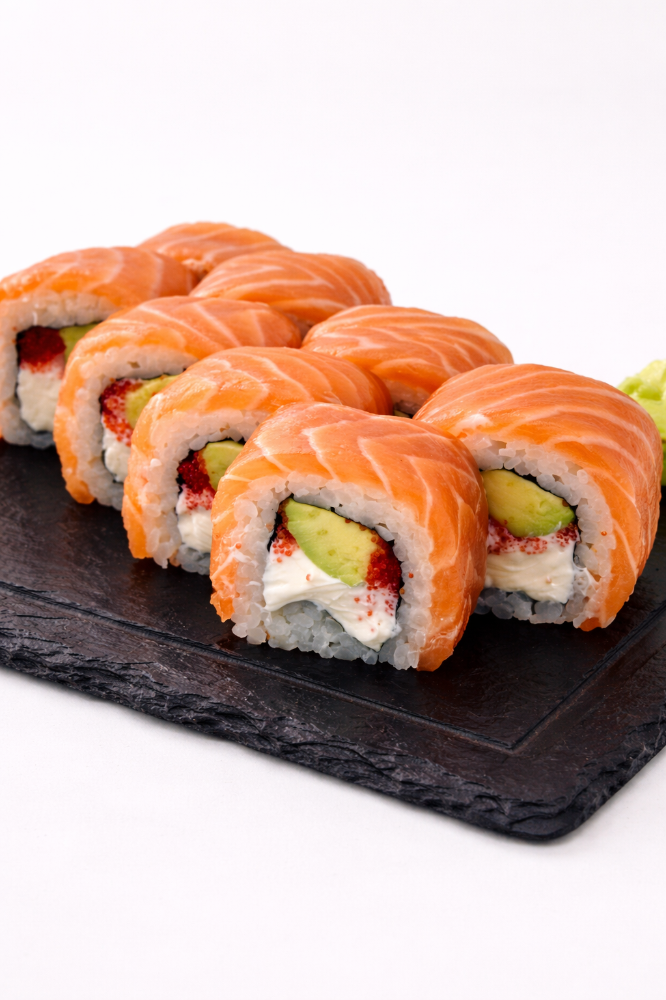 Лосось, сливочный сыр, рис, икра массаго, авокадо